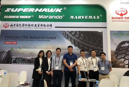 Aug . 21HAWK tyre brought products of its four brands: SUPERHAWK, YINGBA, MARVEMAX and HAWKWAY.